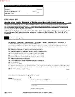 B 202- Declaration Under Penalty of Perjury for Non-Individual Debtors