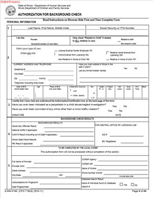 Form IL444-4194 is an Illinois Department of Human Services authorization that allows state agencies to run a background check on you. It is also used by the Illinois Department of Children and Family Services to access child welfare registry records. The form gives these agencies permission to collect and share your background information with a sponsoring employer or program. It covers criminal history checks, child abuse and neglect registry checks, and required sex offender and related registry checks.